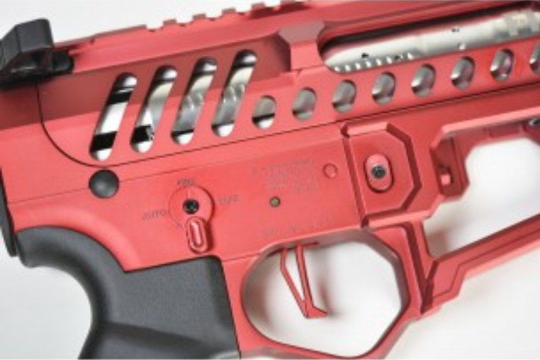 Niestety nie posiada on gearboxa G2. Sugeruję się tutaj tym zdjęciem: Niestety, ale kolor szkieletu, cylinder jak i wycięcia na tylnej ścianie nie wskazują na to aby był to G2. Stawiam na 99%, że to Silver Edge od APS. Nawet atrapa suwadła jest srebrna i lekko wydłużona.