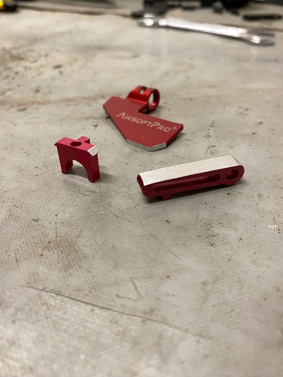 Moje modyfikacje mechaniczne: -zmodyfikowana płytka ładująca L96 (AirsoftPro) -zmodyfikowana zapadka komory HU (AirsoftPro) -zmodyfikowane ramię docisku gumki HU (AirsoftPro) -sprężyna M130 do L96 w standardzie TM -podpiłowane elementu x45 mechanizmu spustowego -wykonanie nowego klipsa „C” mocującego płytkę na dyszy. -