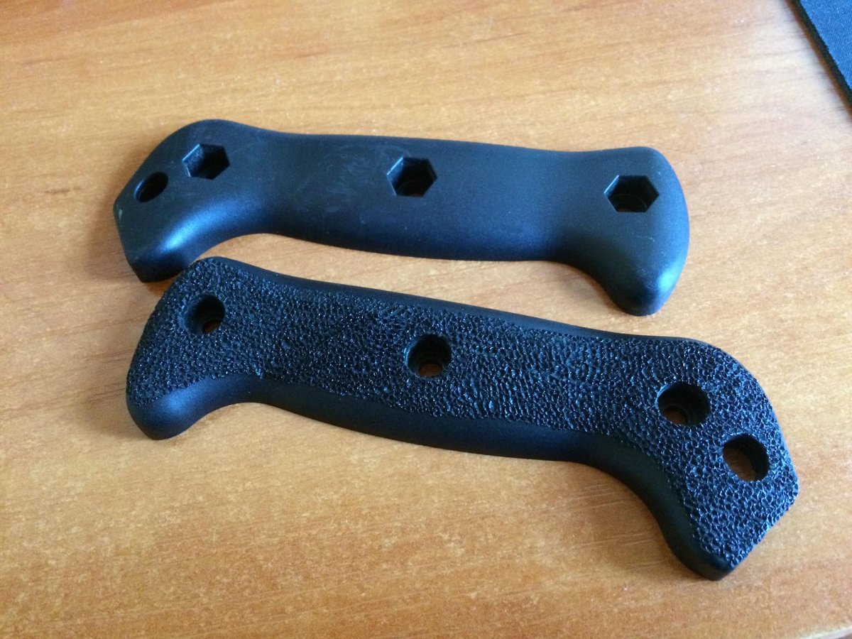 Cześć, Bawił się ktoś z was w strippling? To już moje drugie podejście po paskudnym glocku, wielkiego doświadczenia nie mam, ale jako, że na te okładziny zeszło mi lekko 4-5h, to mogę to i owo powiedzieć. Jeśli kogoś interesuje: 1. Sprawdzić jak plastik się zachowuje na niewidocznej części (np w tym przypadku po wewnętrznej stronie okładzin albo we wew. części chwytu pistoletowego). 2. Zależnie od preferencji możliwe jak najcieńsza końcówka lutownicy - wtedy mamy najlepszy efekt, chyba że ktoś chce paski (będę testował), albo inne wzorki. 3. Maska a na pewno wentylator przy plastiku, lutownicy to nie ostudzi wiele (moja z lidla za 15 czy tam 19 zeta dawała radę) a odsunie śmierdząco-trujące wydzieliny z kompozytów. 4. Ja na koniec robię post-processing tj. twarda szczota z mydłem, żeby wykruszyć plastik, tak aby nie zostawało nam na rękach zdjęcie przed to nr 3 a zdjęcie po to nr 4. 5. Cieszyć się z efektu, bardzo pracochłonne ale różnica jest wielka już gołą ręką, w rękawiczkach efekt jest taki, że stajemy się praktycznie jednością z przedmiotem. Wiem, że nie żadna nowość, ale fajna modyfikacja, może ktoś nie słyszał. Możecie się pochwalić waszymi zabawami ze stripplingiem.