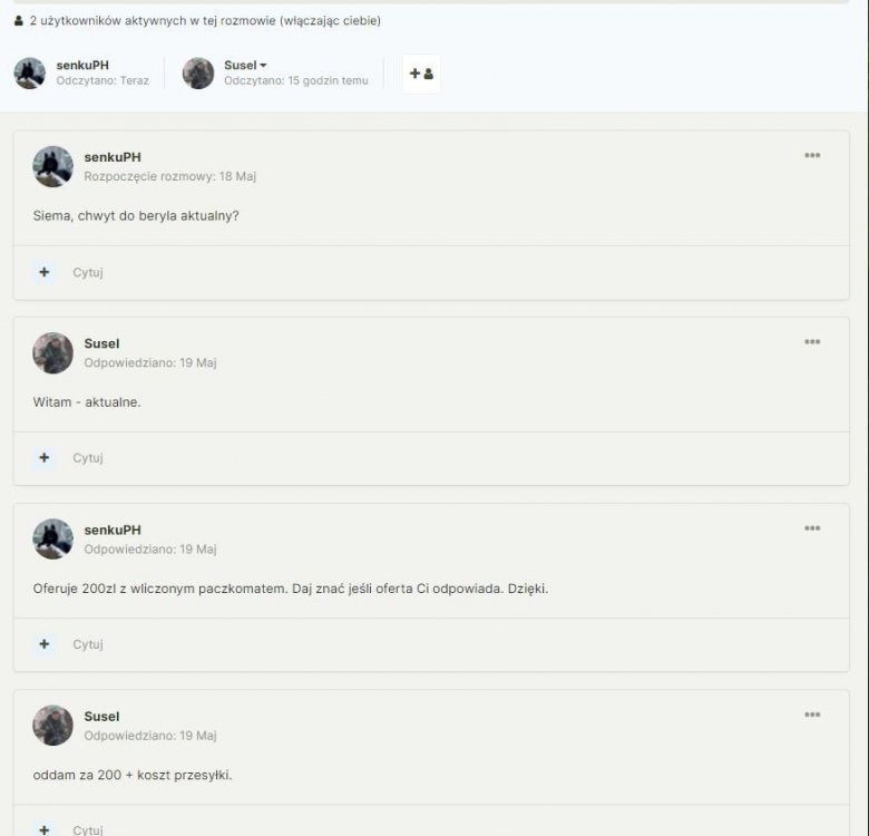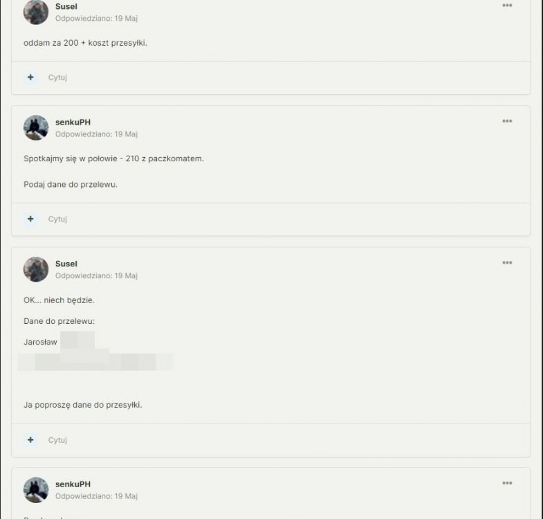 zmuszony brakiem jakiejkolwiek odpowiedzi ze strony "sprzedającego", postanowiłem ostrzec wszystkich potencjalnych kupujących przez użytkownikiem o loginie suseł.