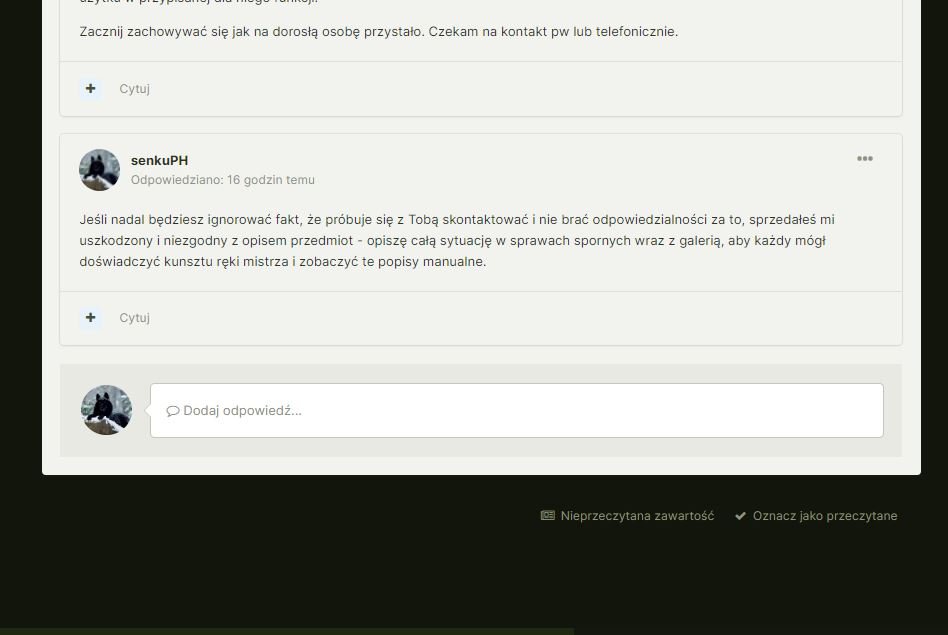 Żałosne, szczeniackie zachowanie, absolutnie nieadekwatne do wieku, czy też stażu użytkownika na forum (co w zasadzie przekonało mnie do transakcji).