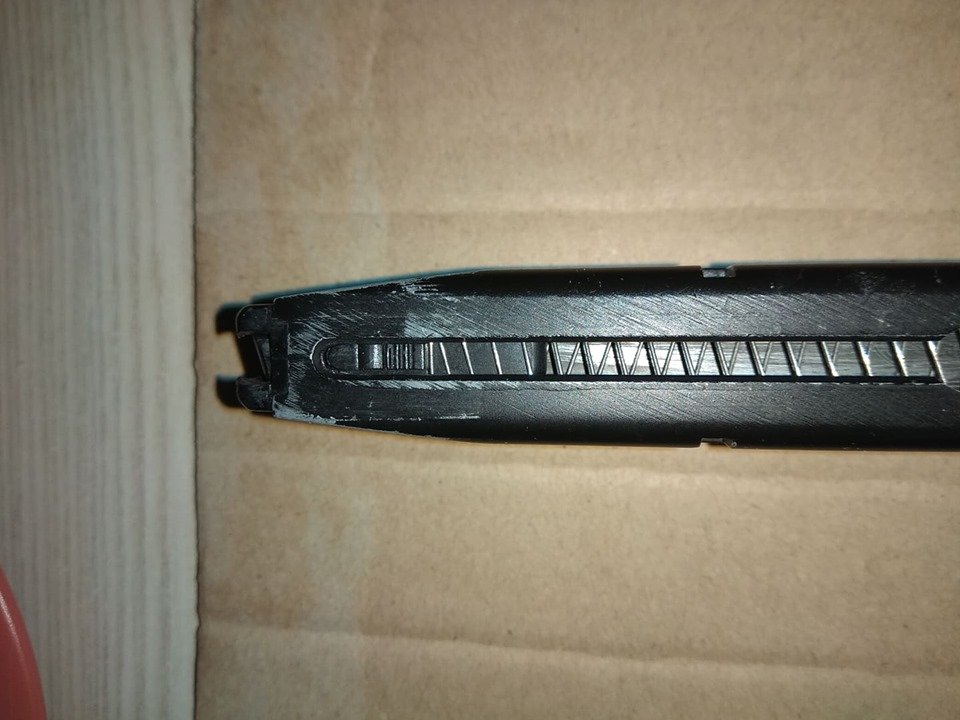 ostatnio kupiłem w pakiecie magazynki do Beretki, w tym jeden, którego pochodzenia nie znam. Szukałem w internetach i tutaj na forum, jednak nie udało mi się. Czy jest ktoś kto ma pojęcie jakiej firmy jest to magazynek? Cechy charakterystyczne w porównaniu do najbardziej popularnych magazynków dostępnych na rynku (KJW/WE) to z pewnością wyżłobienie na boku magazynka w miejscu, gdzie blokuje się on po wystrzeleniu ostatniej kulki, wcięcie w "naciągaczu" sprężyny w celu ładowania kulek (które swoją drogą super spełnia swoją rolę), oraz górny zawór, który ma inny kształt i jest nieco niżej osadzony, niż te od WE i KJW, przez co nie jest on kompatybilny w moim przypadku z M9 od KJW.